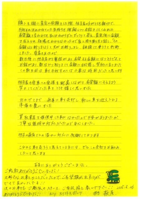 横浜市にお住いのS様より、スイフトスポーツの買取りをさせていただきました。 ご来店、ご成約いただきありがとうございました! _____ 購入を機に査定の依頼をした際、担当者の方がとても親切で、手放すか[続きを読む]
