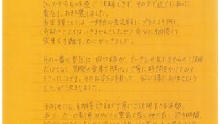 当初、別の査定店にみていただきましたが、何となく心にひっかかるものを感じ、決断できず、その足で近くにあった貴店にお邪魔しました。