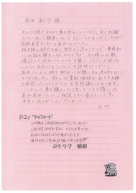 お客様のお手紙2025年7月26日H29年式 ソリオバンディッド