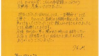 担当してくださった田口さんには、一生懸命でとても丁寧で、ちょっとした客側の体調の変化に気づき声かけをしてくださったことで親しみやすさもわきましたしとても感謝しております。